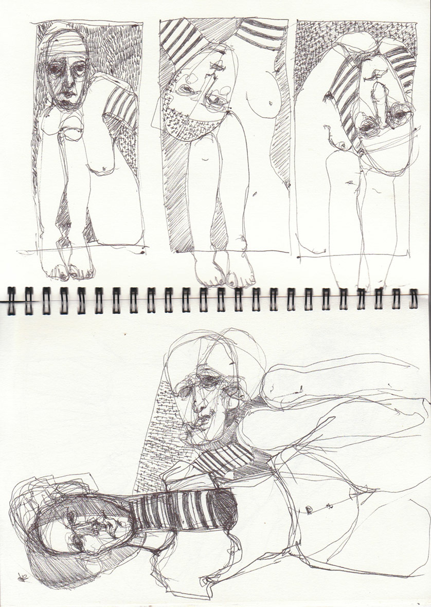 A couple of weeks ago I posted a sketch book entry ‘waiting for David’ I have started work on the individual pieces below.
