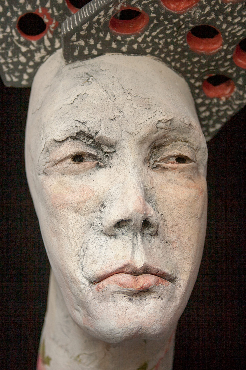 siren #1 July 13, 2013 | veronicacay ceramic sculpture, inderglaze, acrylic and vintage fabric 60 cm x 30 x 30 cm