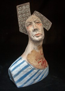 waiting in the wind July 15, 2013 | veronicacay clay sculpture, underglaze, stains, acrylic and vintage music score 50 x 30 cm