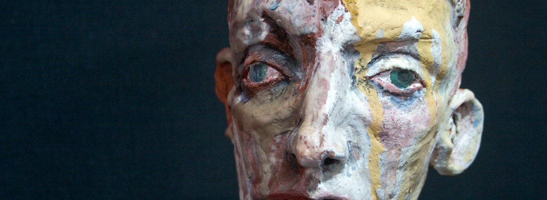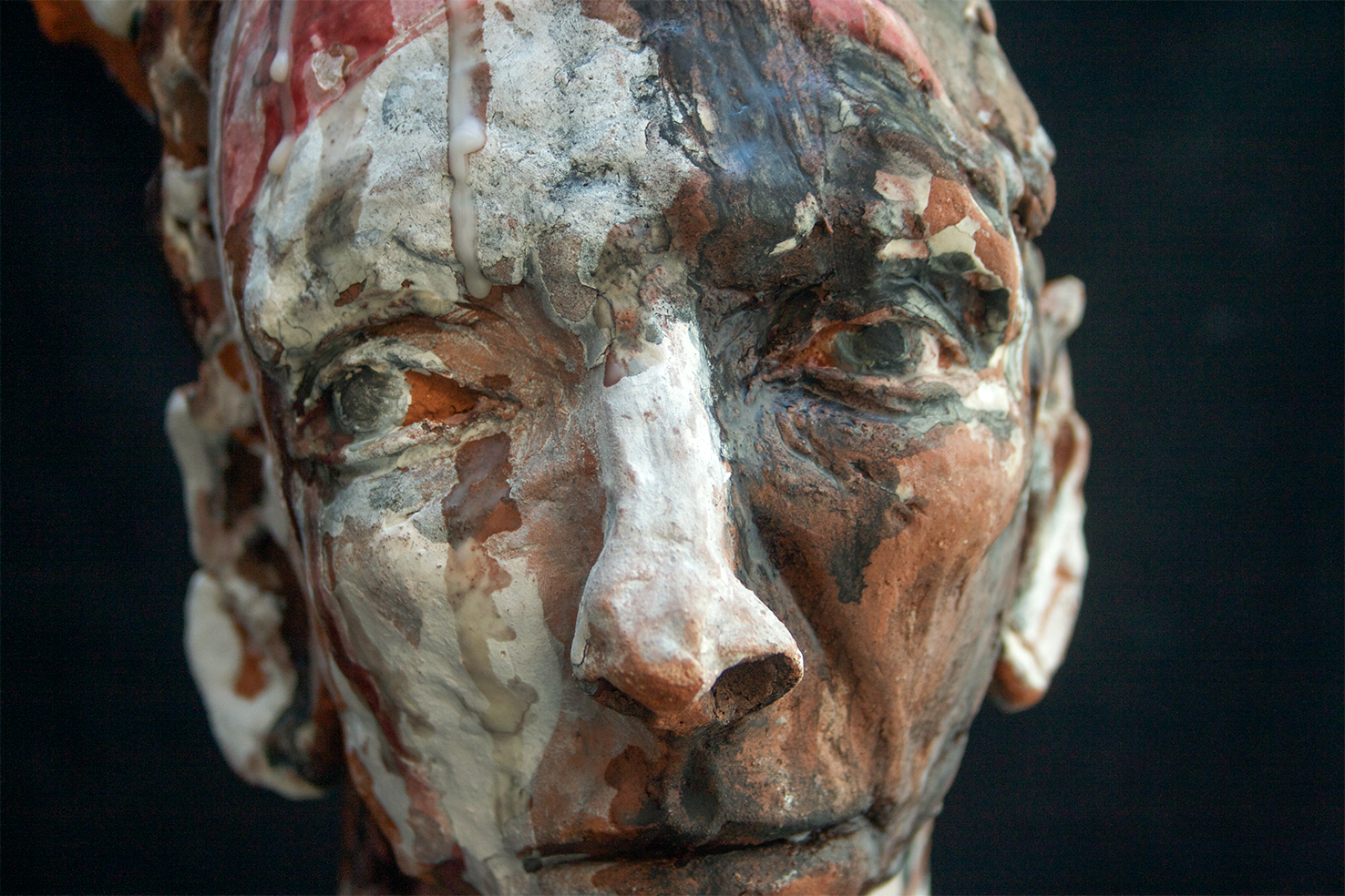 keanes white rake, hand built, underglaze, terra sigillata, sgraffito, encaustic and vintage buttons h 30cm