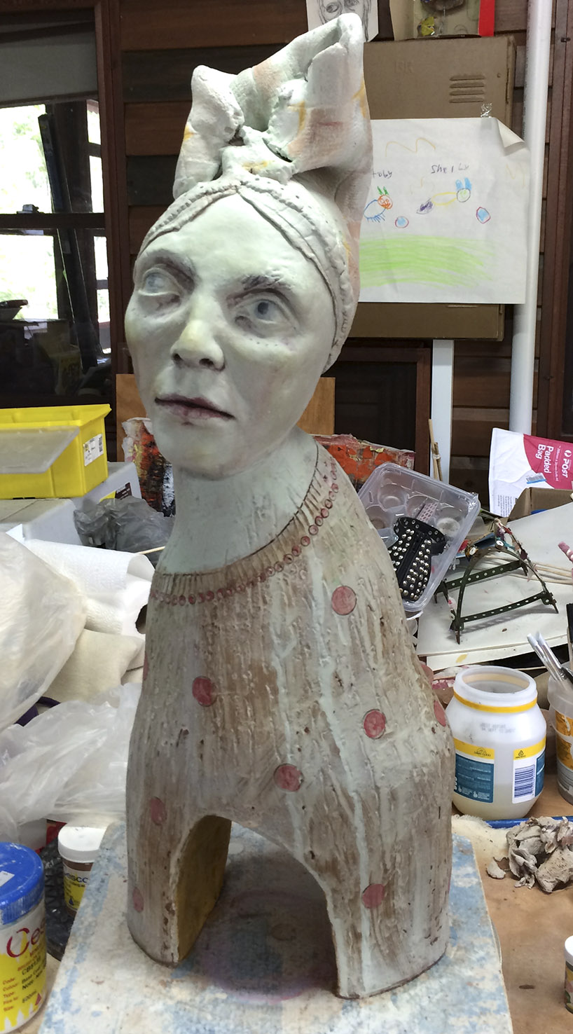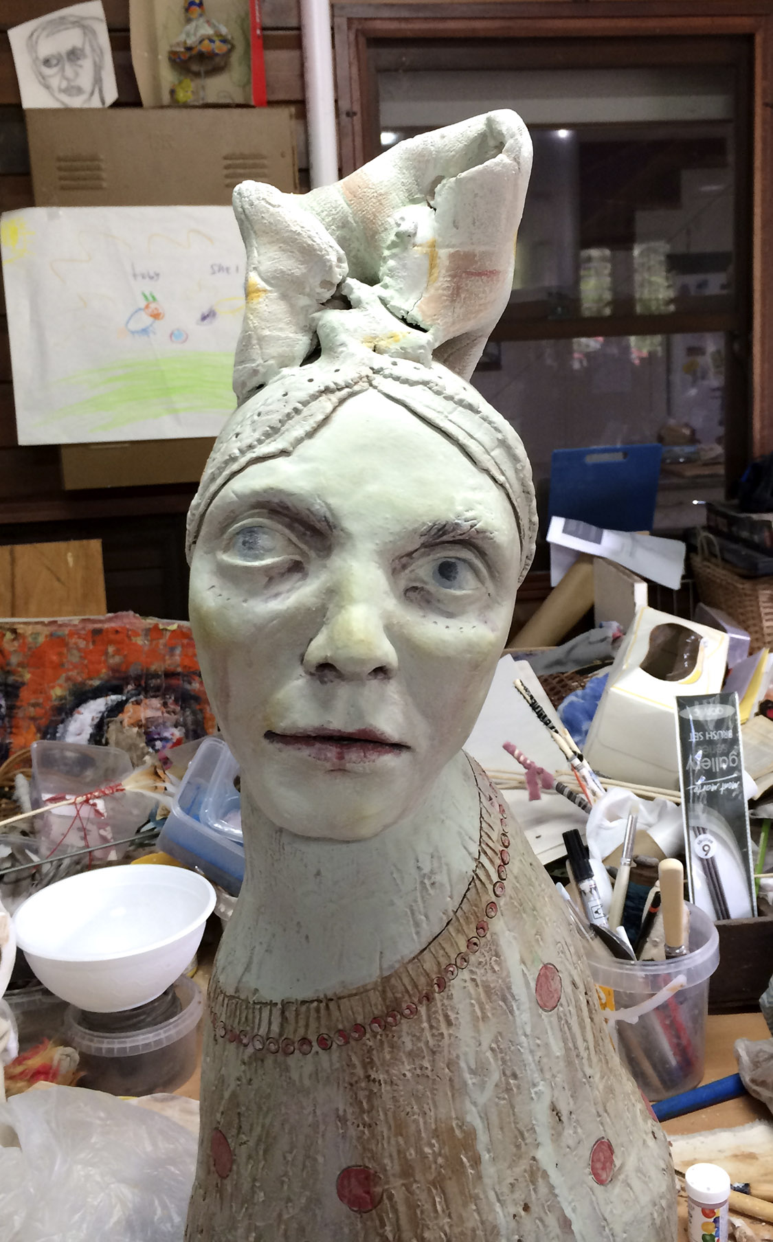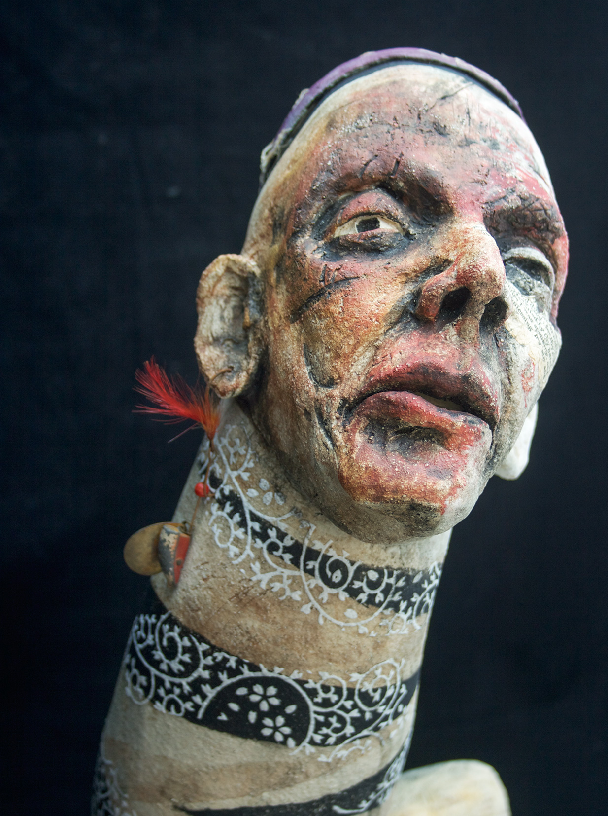 burdenwithcare has had two firings and a final wax finish – still thinking about her headress  whether to stick with the jute or go with something a bit more decorative – perhaps leather but I also have a huge range of vintage linen threads which could also work.   burdenwithcare_detail2