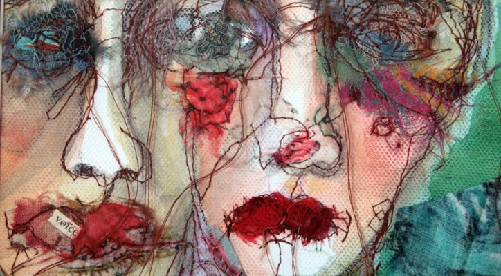last week I took my sewing machine into the life studio – usually i draw directly onto canvas or linen and then stitch – on thursday I stitched directly onto the canvas – trying to capture movement and feeling – the colour is watered down acrylic applied to the back of the canvas This is the result after several more hours of stitching.