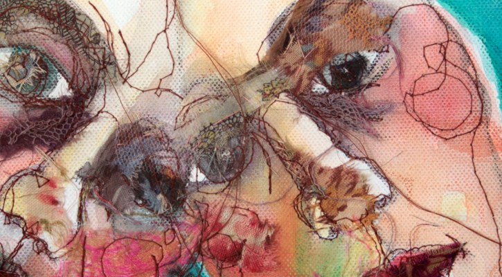 last week I took my sewing machine into the life studio – usually i draw directly onto canvas or linen and then stitch – on thursday I stitched directly onto the canvas – trying to capture movement and feeling – the colour is watered down acrylic applied to the back of the canvas This is the result after several more hours of stitching.